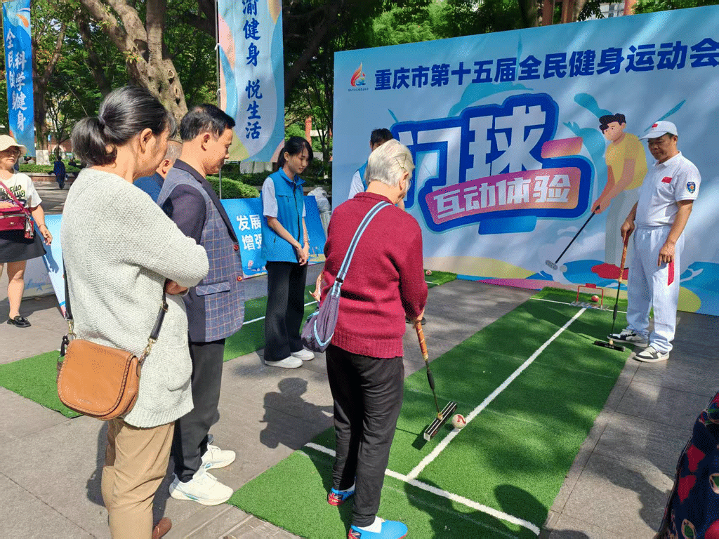 市民体验门球。重庆市体育局供图