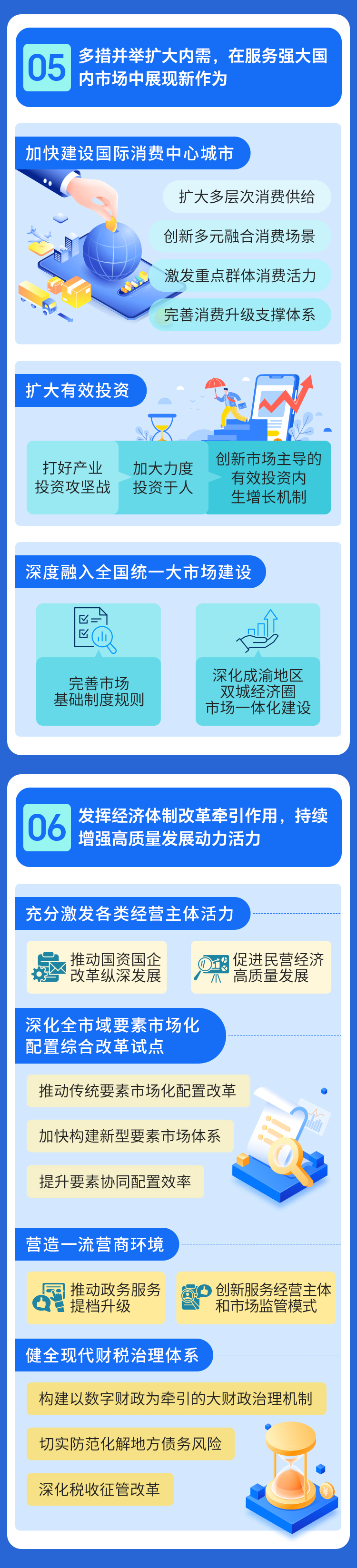 “强保障”重点是健全财税和投融资管理体制机制。重庆将构建以数字财政为牵引的大财政治理机制,实施全口径全要素预算管理,深化税收征管改革。