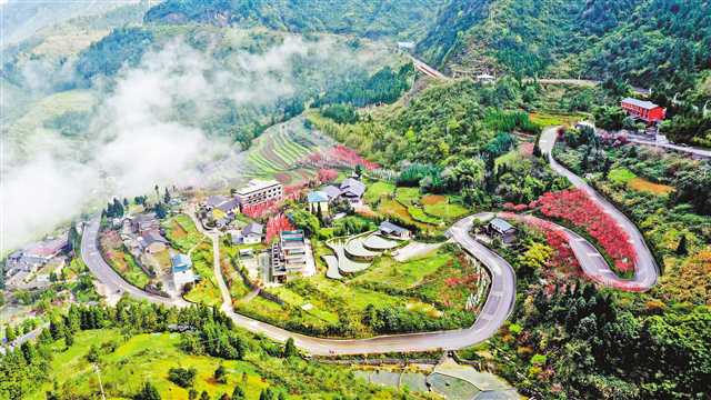 3月16日,在万盛经开区黑山镇南门村林口社,公路两侧桃花盛开,晨雾缭绕山乡、远山、梯田、农家,宛如人间仙境。万盛经开区把公路修到农户家门口,将20余个乡村旅游景点串连起来,发展特色旅游,乡村游日益红火。