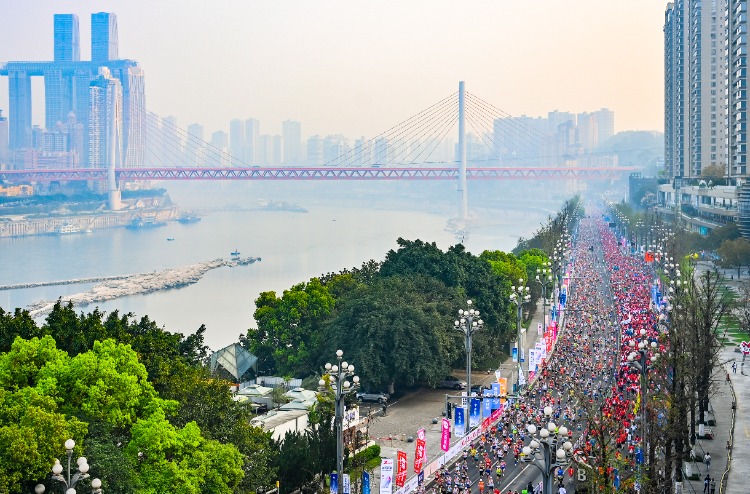3月24日,重庆南滨路、巴滨路就见证了这样的盛况。当日,由重庆市体育局、南岸区人民政府、巴南区人民政府主办的2024长安汽车重庆马拉松在此激情开跑。这是重马第12次鸣响发令枪。来自全球26个国家和地区、426个城市的3万名跑友,在美丽的长江之畔尽情畅跑,感受重庆魅力,共享体育荣光。