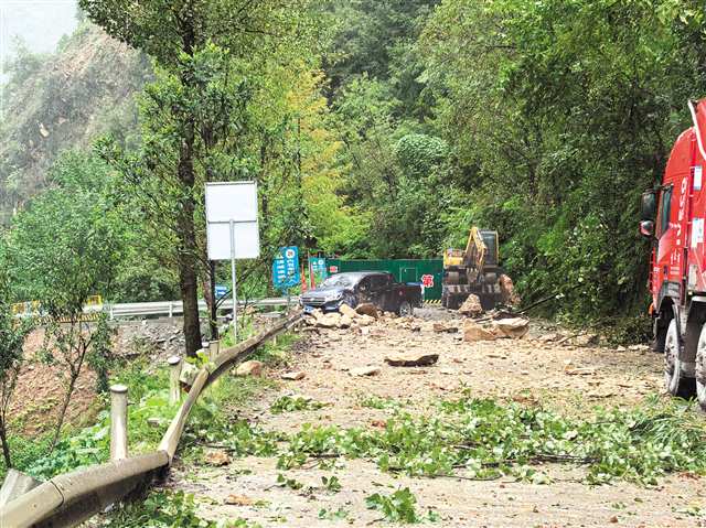 村干部第一时间赶赴现场,落石位于当地虎耳岩一处危岩主体的附近,考虑到强降雨可能引发次生风险,大家研判后对事发路段实施紧急封闭。后经地质专家勘查,确认无重大隐患后,道路于10月1日12时恢复通行。