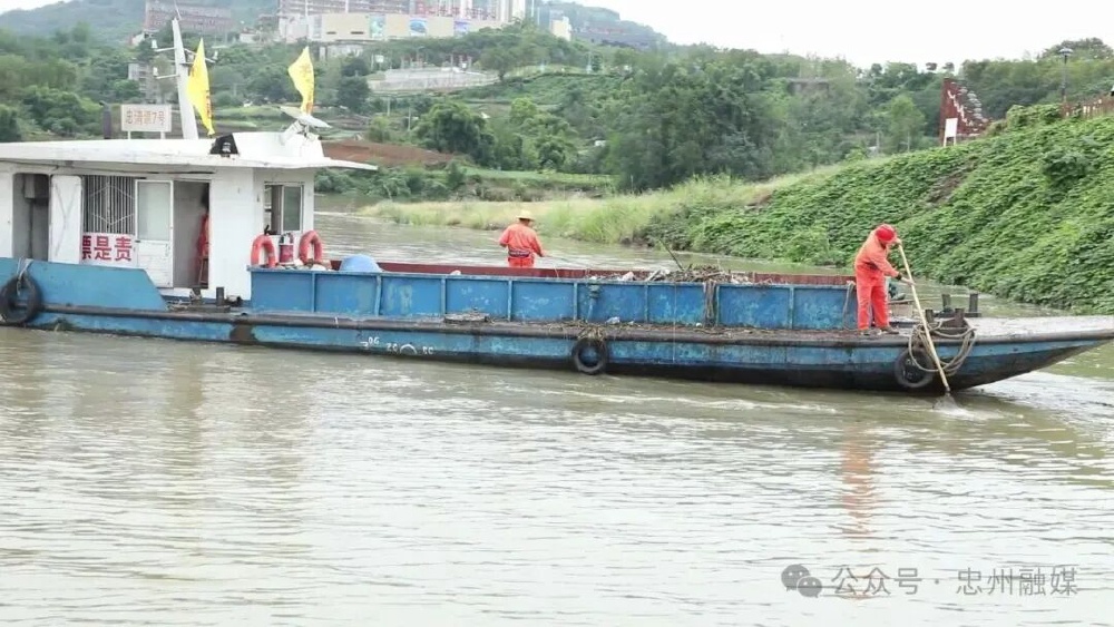 同时,水位快速上涨裹挟上游大量树枝、杂草等漂浮物涌入江中,既影响景观,又威胁船舶航行安全。当地清漂部门及时派出多艘清漂船开展作业,全力保障江面整洁。