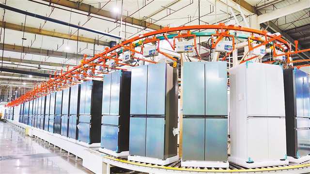 走进工厂生产车间,入眼皆是智能生产场景——在车间流水线上,多台工业机器人挥舞机械臂,精准粘贴冰箱的能耗贴标志。这个一度非常依赖人工操作、又容易出错的工序,如今被AI视觉定位和打印信息自动导入技术替代,不仅实现“零差错”,还将生产效率提升30%以上。