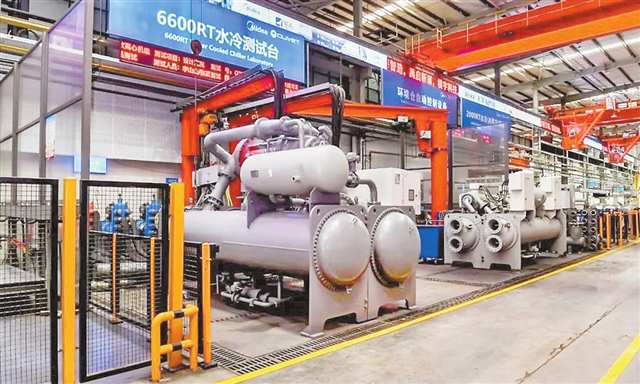 重庆美的通用成立于2004年,主要生产水冷离心式中央空调,这是一种高效、节能、环保的大型制冷设备,广泛应用于商场、地铁站、工业园区等领域。近年美的为北京大兴机场、重庆长安汽车全球研发中心等重大建设项目配套的大型中央空调,都是产自于重庆这座智造工厂。