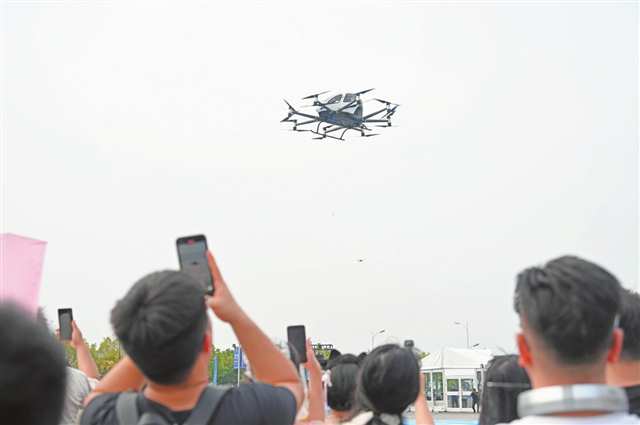 观众在智博会上观看长安汽车推出的飞行汽车表演。记者 崔力 摄/视觉重庆
