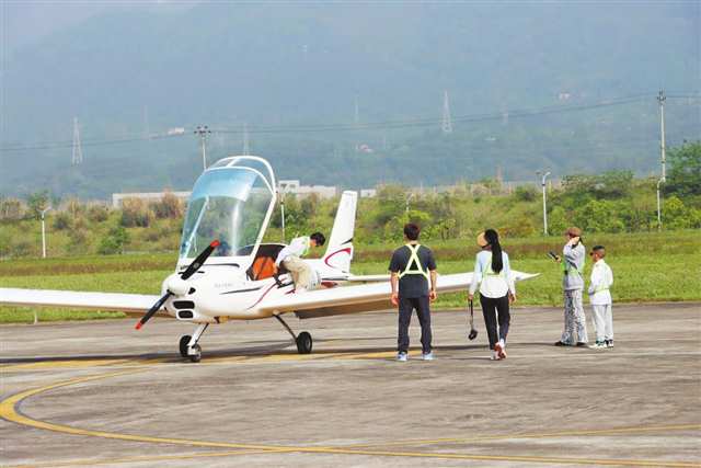 位于两江新区的重庆龙兴通用机场内,重庆市民在进行低空飞行体验。(受访者供图)