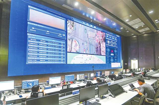 暴雨将至,江津区数字化城管中心在指挥无人机,对城区开展低空应急巡查。记者 郑宇 摄\视觉重庆