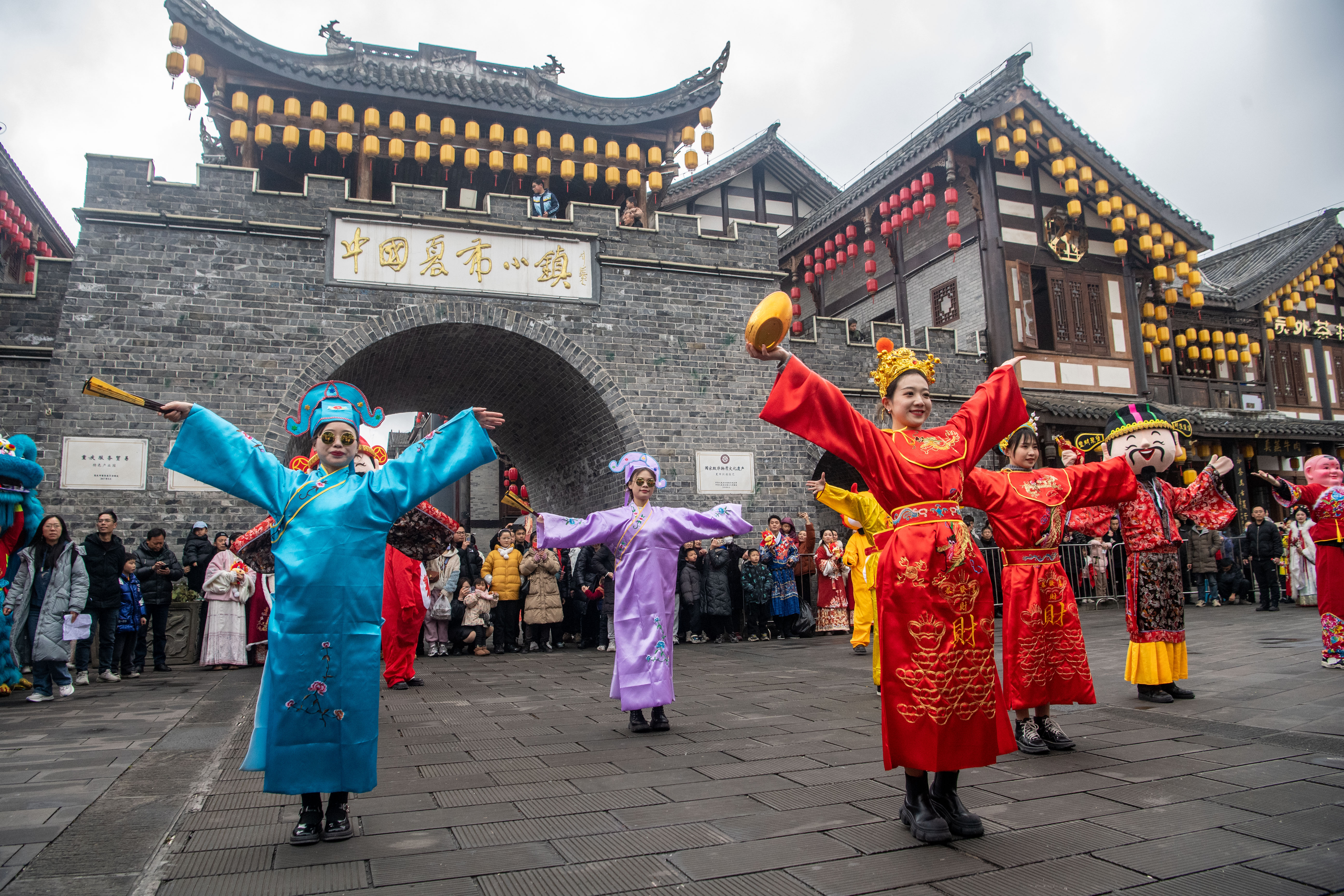 2024年2月24日,表演者们在重庆市荣昌区夏布小镇“千年荣昌喜乐元宵”2024年系列元宵节民俗文化活动上表演节目。新华社记者 唐奕 摄 (资料图)