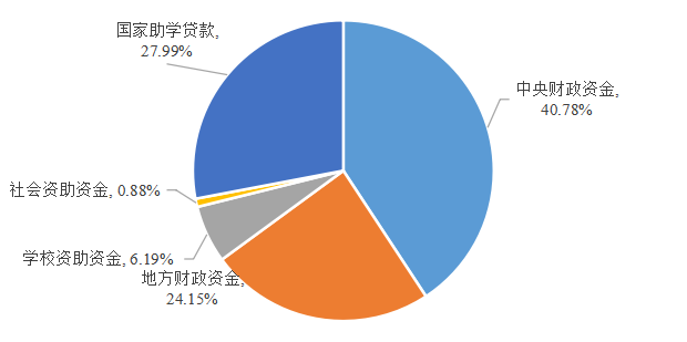 财政资金占资助资金总额的64.94%,是学生资助资金的主要来源,发挥了主导作用。其中,中央财政资金占资助资金总额的40.78%,占财政资金总额的62.80%;地方财政资金占资助资金总额的24.15%,占财政资金总额的37.20%。