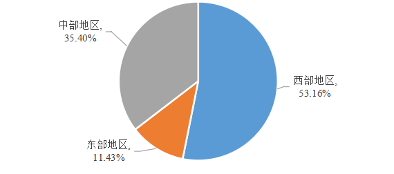 从区域来看,西部地区资助12.60亿元,占53.16%;中部地区资助8.39亿元,占35.40%;东部地区资助2.71亿元,占11.43%。