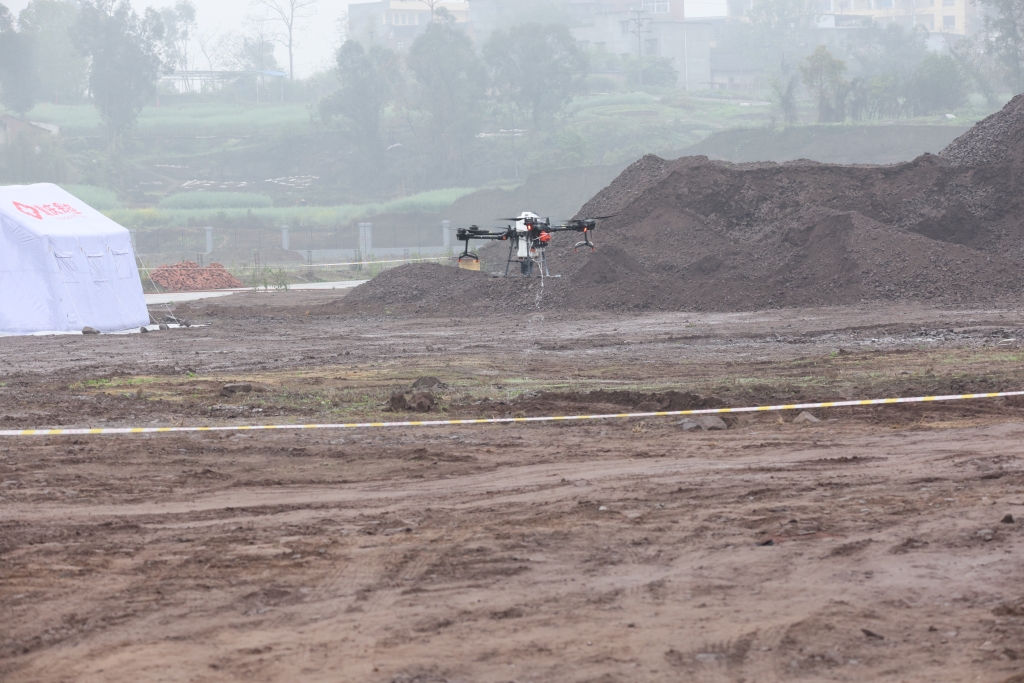 多功能无人机喷洒作业。重庆市生态环境局供图