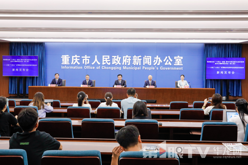“高质量完成‘十四五’规划 谱写中国式现代化重庆篇章”系列主题新闻发布会(第三场)9月12日举行,本场介绍“十四五”时期全市民政事业高质量发展成效。图为新闻发布会现场。第1眼TV-华龙网记者 石涛 摄