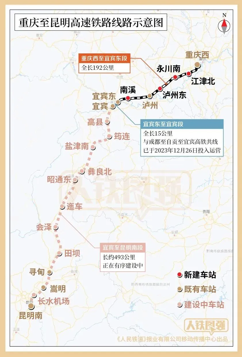 重庆西至宜宾东段全长192公里,于2024年9月29日开通运营;