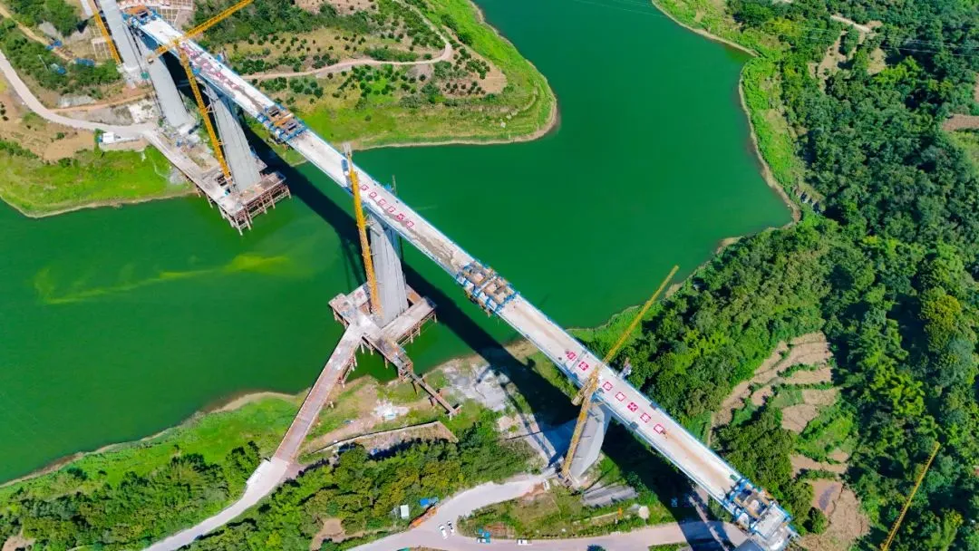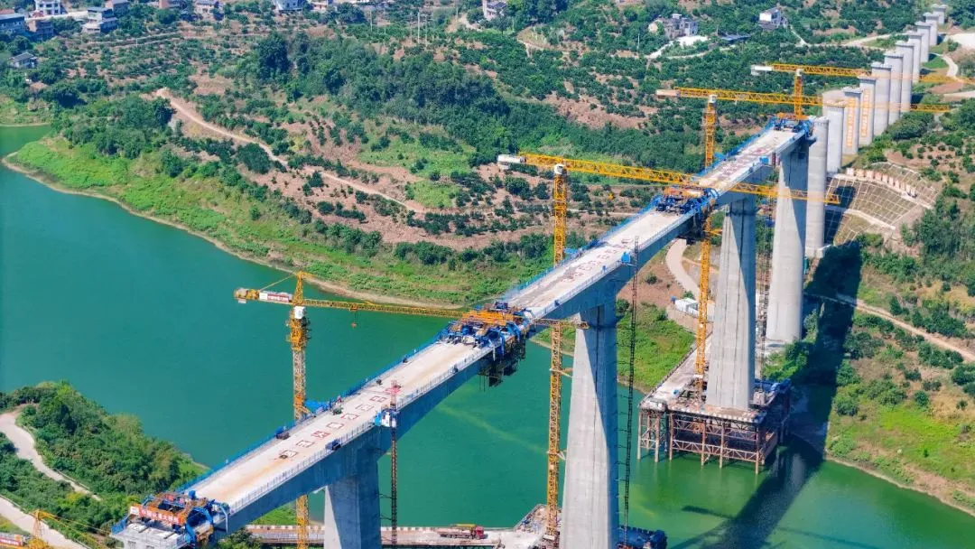 渠溪河双线特大桥位于重庆市涪陵区珍溪镇,横跨长江支流渠溪河,全长953米,是全线重难点工程。
