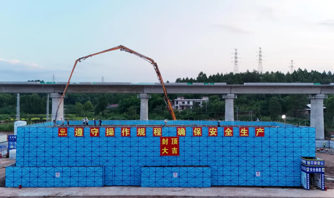 8月21日7时许,随着最后一方混凝土浇筑,成都至重庆中线高速铁路(以下简称成渝中线高铁)四川段首座牵引变电所顺利封顶,标志着成渝中线高铁四川段“四电”工程正式进入攻坚阶段,为后续启动联调联试奠定了坚实基础。