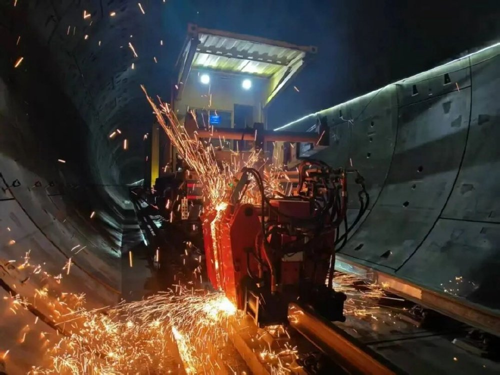 日前,随着井口站至重光立交站最后一根钢轨焊接锁定,轨道交通15号线二期井口站至重光立交站实现全线“轨通”,为后续机电设备安装、系统联调以及全线通车目标的达成奠定了坚实基础。