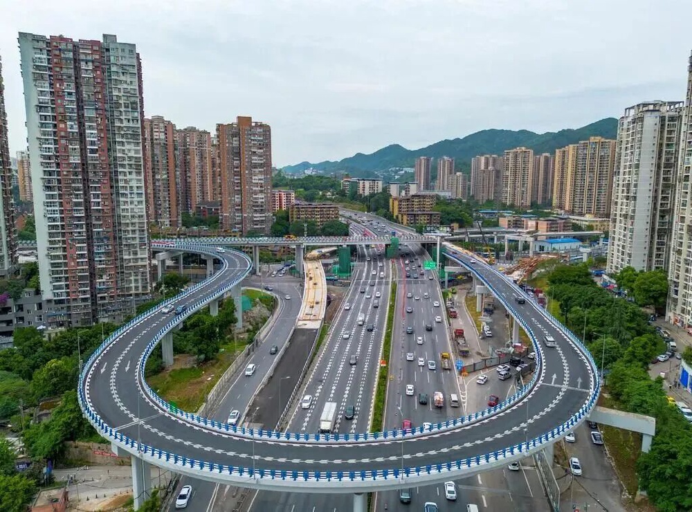 项目共分两个标段建设,其中二标段位于沙坪坝区,施工内容涵盖主线隧道、桥梁、路基及内环快速路拓宽等多项内容。目前,工程总体进度已达96%,进入最后冲刺阶段,预计今年9月全面完工。