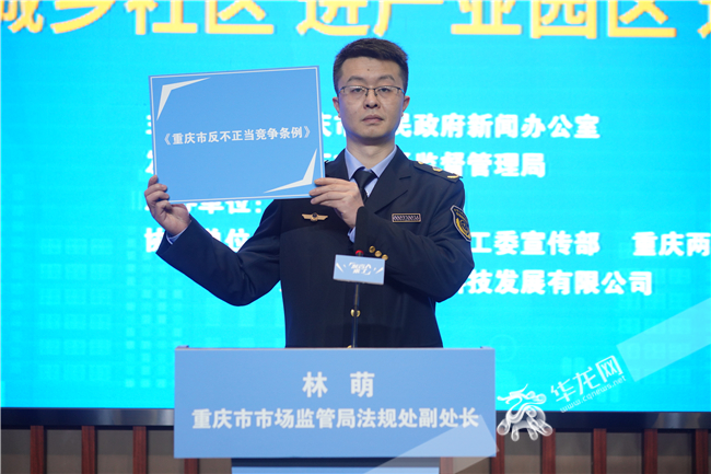 去年9月28日,《重庆市反不正当竞争条例》经市五届人大常委会第三十七次会议表决通过,已于今年1月1日正式施行。发布会现场,林萌对法规内容进行详细解读,引得市民朋友热情发问。
