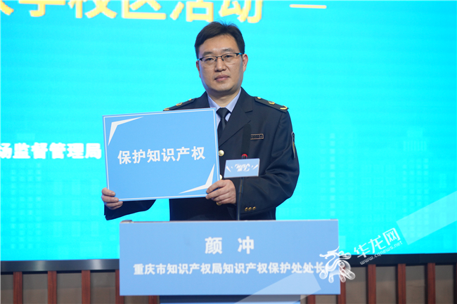 重庆市知识产权局知识产权保护处颜冲作主题分享。华龙网-新重庆客户端记者 欧武夷 摄