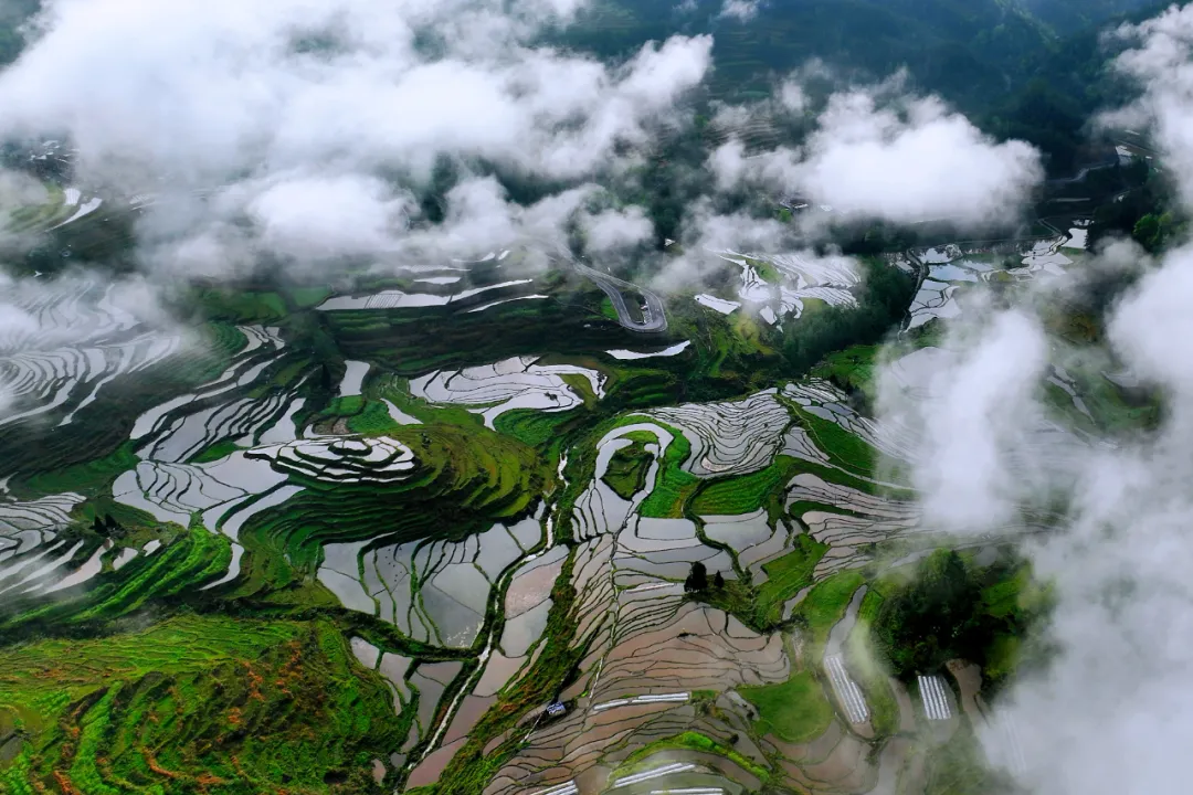 四月是观赏花田梯田的最佳时段!此时位于何家岩村的万亩梯田刚刚蓄水,波光粼粼如一面面明镜,线条交错、层次分明,展示着人与自然和谐共生的美丽景象。若是你想要感受草原风光,还可前往位于花田乡的菖蒲盖,盖顶龙洞坪草原纵深长约9.7公里,幅员面积达到了13.5平方公里,草原上天池水清如镜,绿洲牛羊成群。