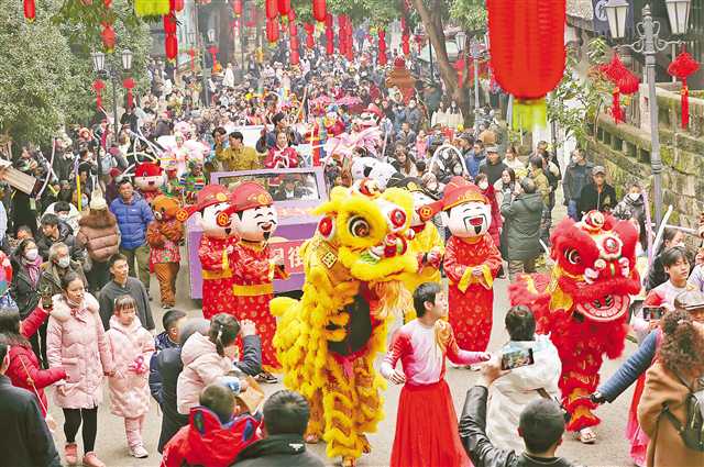 狮舞花车巡游、舞草龙、赏花灯……春节里精彩纷呈的民俗活动,是新年的“老味道”,唤起人们的集体记忆,也营造出浓浓年味,让人们在欢乐喜悦中庆新春。