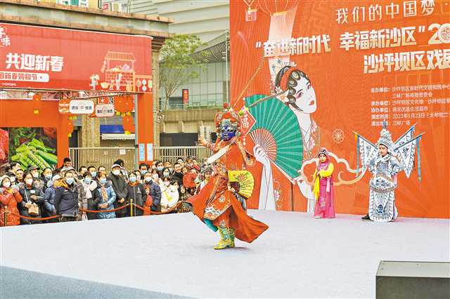 图②:1月23日,沙坪坝三峡广场,川剧演员表演变脸,赢得现场观众一片喝彩。通讯员 郭晋 摄/视觉重庆