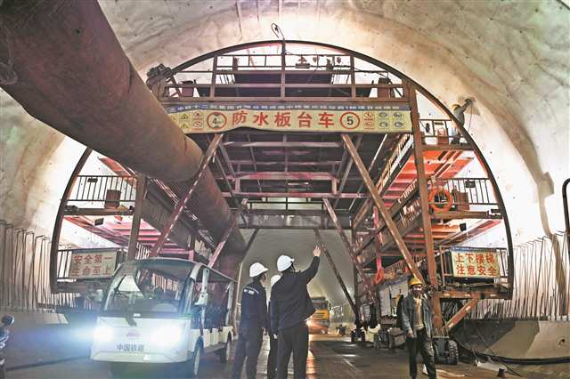 3月3日,成渝中线高铁重庆段中梁山隧道,中铁十二局的技术工人正在进行二衬施工。(本版图片除署名外由记者罗斌摄\视觉重庆)