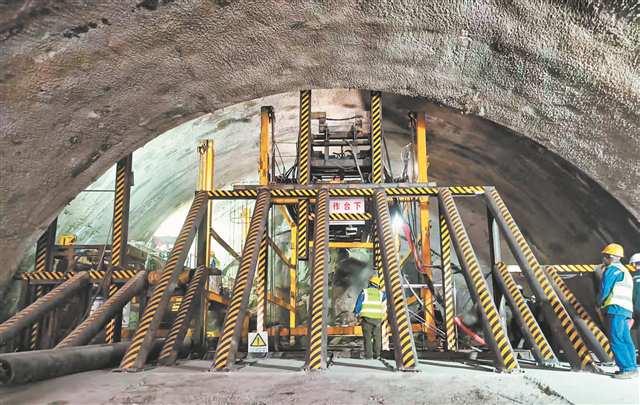 机械轰鸣,焊花飞溅……2月26日,在中梁山隧道施工现场,中铁十二局成渝中线重庆段站前1标分部经理祝俊甲手持探照灯,眉头紧蹙、目不斜视地紧盯掌子面岩壁,“隧道内一丝风吹草动都不可小觑,随时可能发生岩土沉降。”