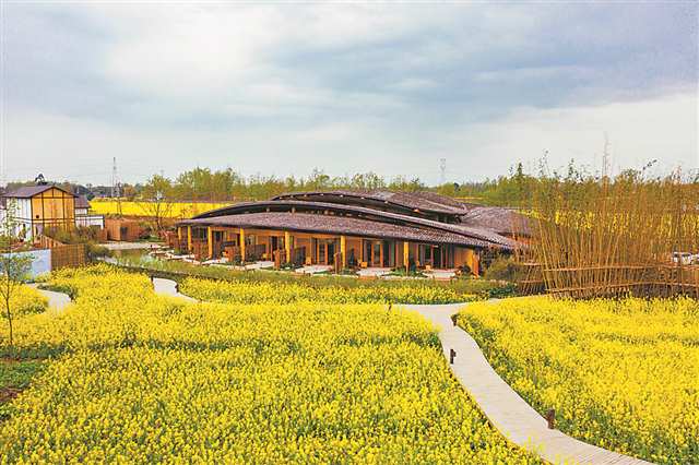 庙湾村引进专业的设计师团队对村庄进行改造,不仅保留了林盘传统风貌,还融入了现代生活美学,打造出吴烧房、村民食堂等空间,建成花田绿道17公里。