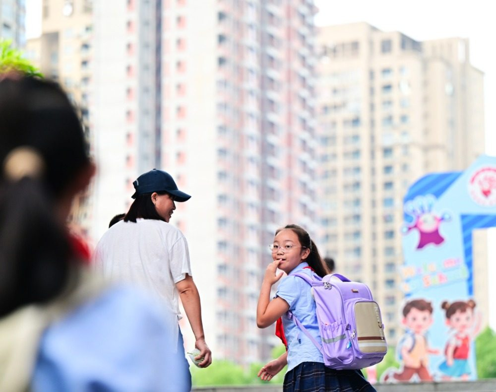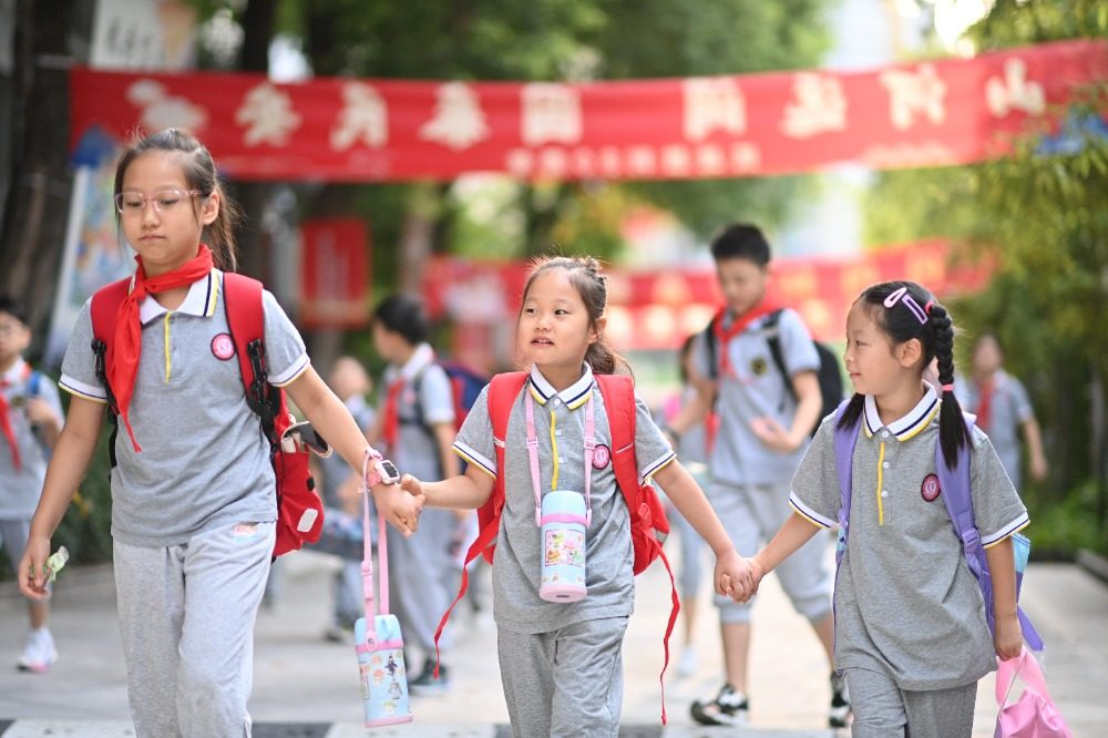 9月1日,沙坪坝区凤鸣山小学,学生们开心地步入校园,将开启新学期的第一天学习。特约摄影 孙凯芳