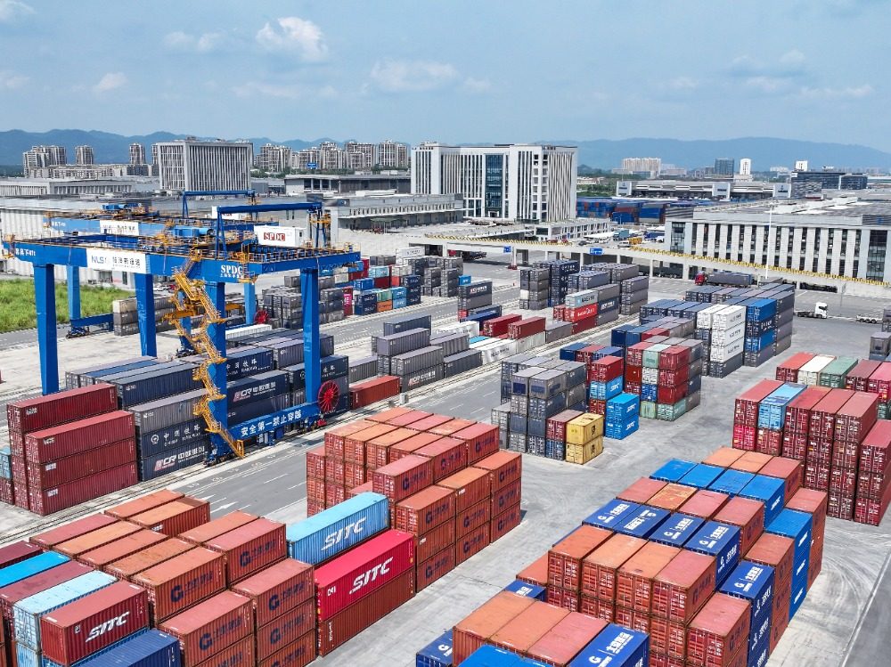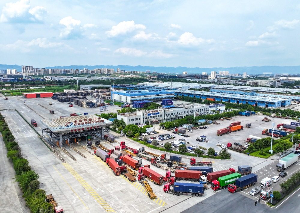 2025年9月16日,位于沙坪坝区的陆海新通道重庆无水港一片繁忙景象(无人机照片)。通讯员 郭晋 摄