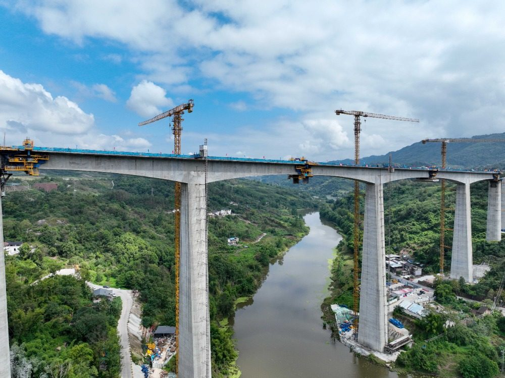 2025年9月24日,渝万高铁五布河双线特大桥成功合龙,为全线贯通奠定坚实基础(无人机照片)。特约摄影 李攀