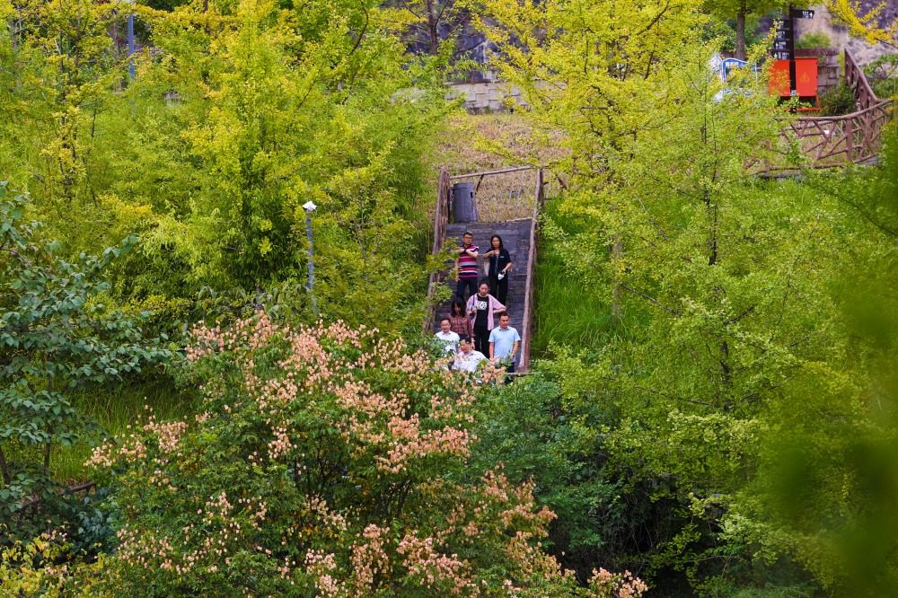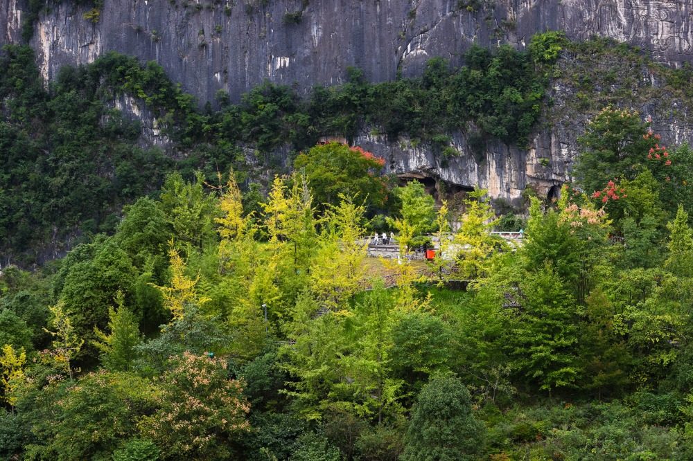 9月27日,黔江区,银杏树叶掩映着黔江区城市大峡谷景区一角。特约摄影 杨敏