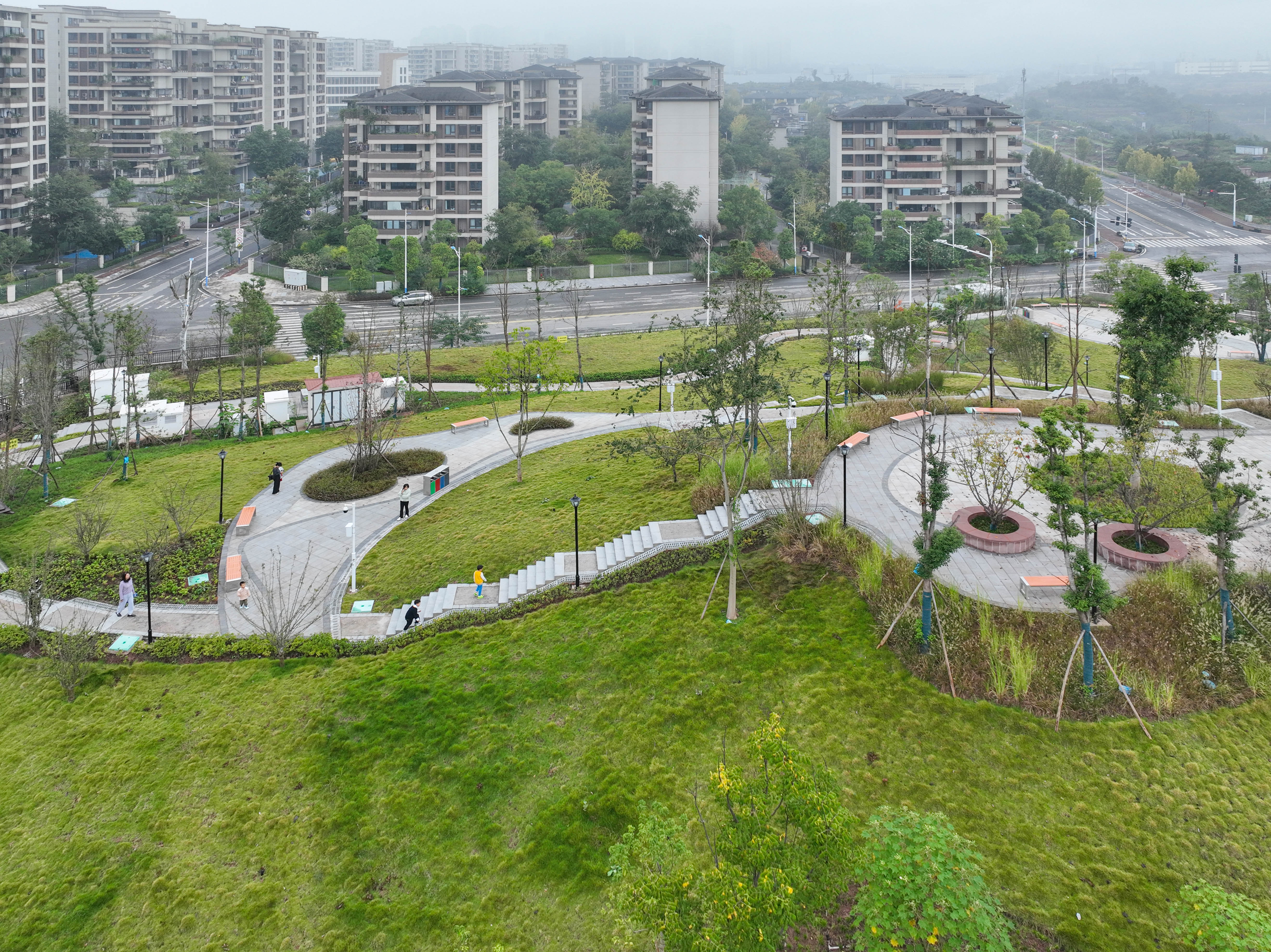 2025年11月2日,两江新区水土新城复兴轨道站附近,呈不规则梯形的小山坡已变身为绿意盎然的口袋公园。该项目景观面积约9320㎡。记者 张锦辉 摄