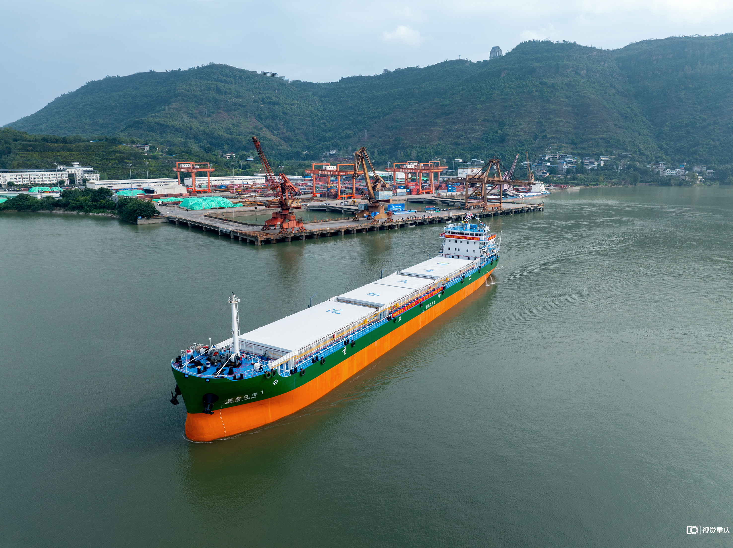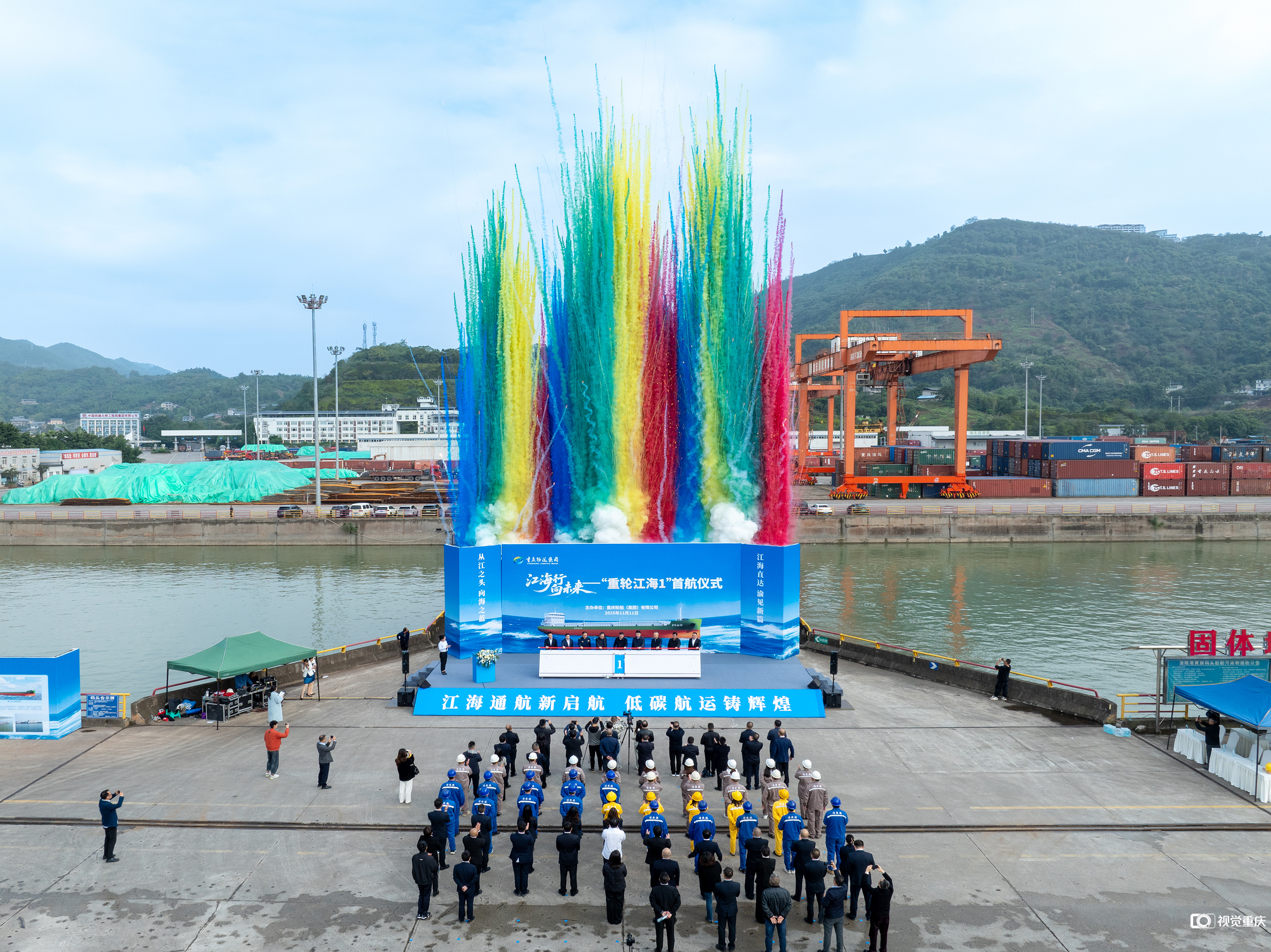 “重轮江海1”是重庆市第一艘江海直达船舶,由重庆轮船(集团)有限公司所有,中国船级社重庆分社负责建造检验,重庆中江船业有限公司施工建造。船舶总长130米,型宽16.2米,型深8.85米,受载1万吨。作为一艘采用LNG单一燃料的先进船舶,“重轮江海1”实现了从长江到海洋全程的“近零”硫氧化物和颗粒物排放,同时大幅降低碳排放,安全性、经济性、环保性均达到国内乃至国际先进水平。不但实现了通江达海的无缝衔接,提升了西南地区与沿海港口之间的物流效率,降低了转运成本。同时也标志着涪陵乃至西南地区的船舶工业,在高端、绿色、智能江海直达船舶的建造能力上实现了新突破。