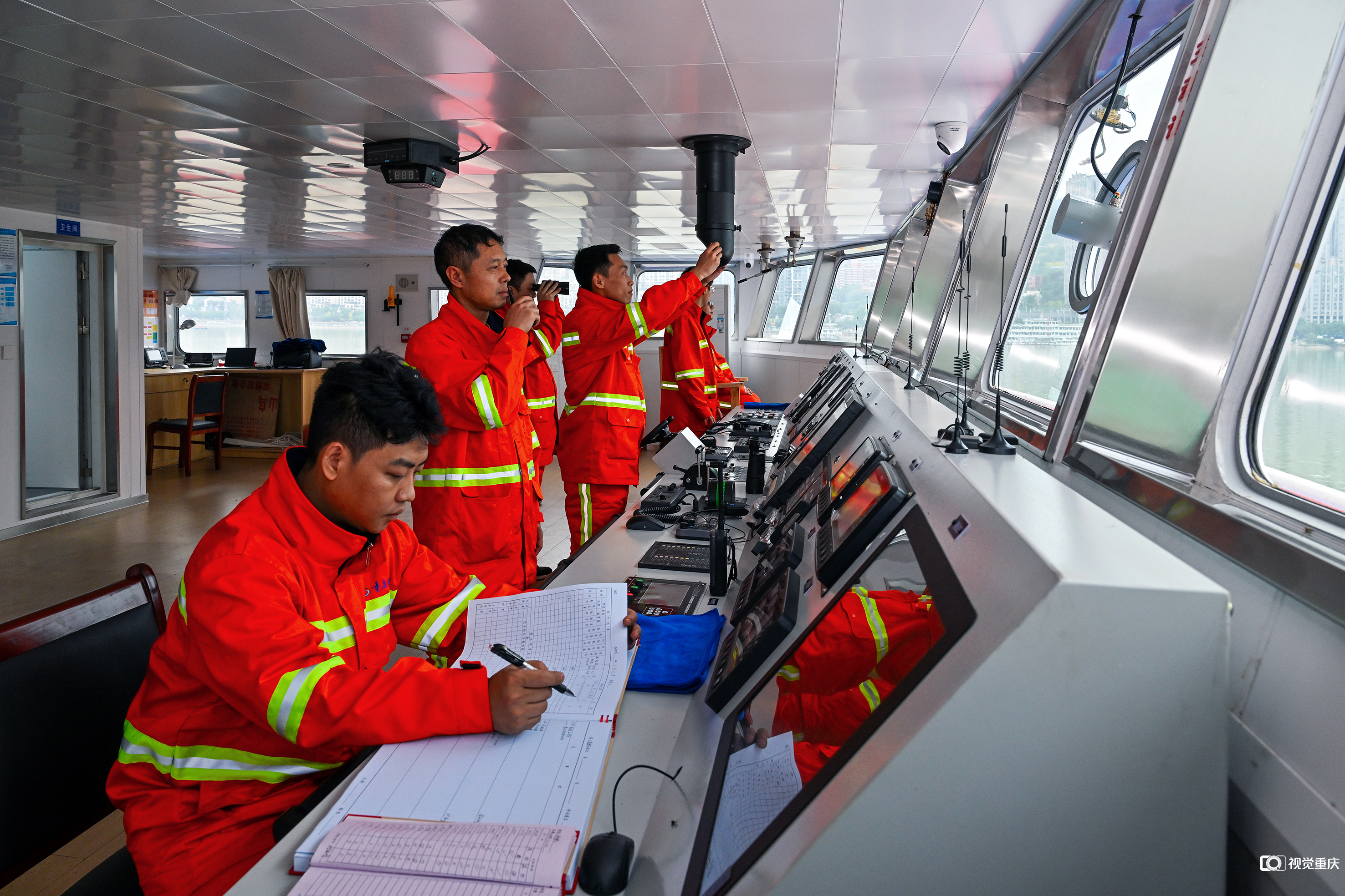 11月11日,涪陵区黄旗港,“重轮江海1”驾驶室内,工作人员做首航前的准备。记者 张春晓 摄
