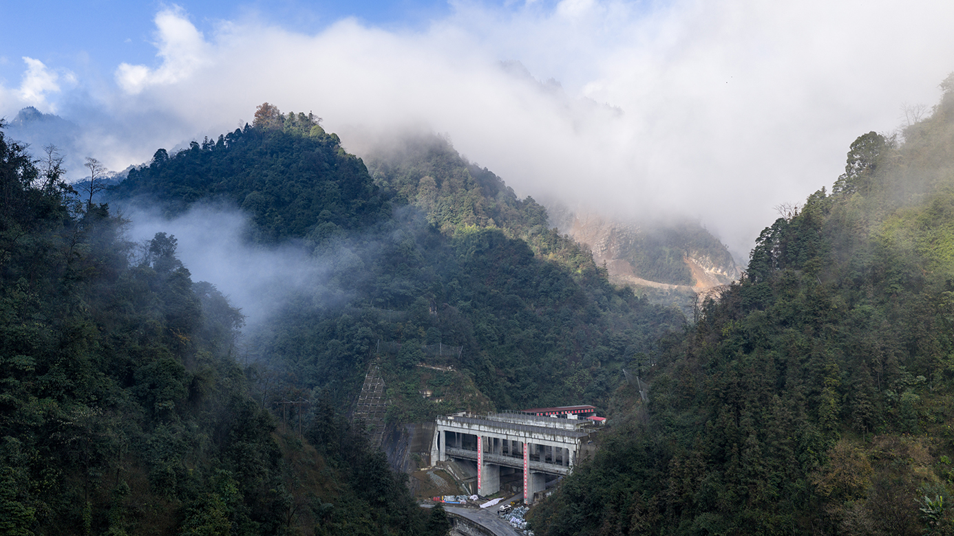 12月10日拍摄的渝昆高铁彝良隧道口(无人机照片)。新华社记者 胡超 摄