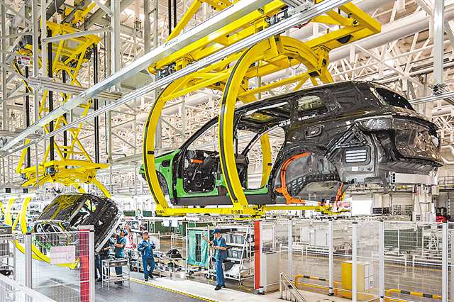 11月4日,两江新区赛力斯超级工厂,车身被自动化设备吊入总装线。记者 李雨恒 摄/视觉重庆