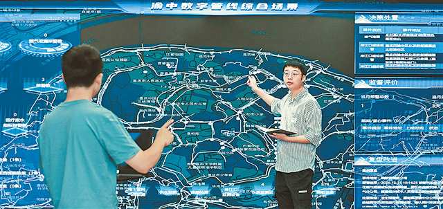6月19日,渝中区大数据局,工程师在数字管线综合场景后台精确管线点位。记者 张锦辉 摄/视觉重庆