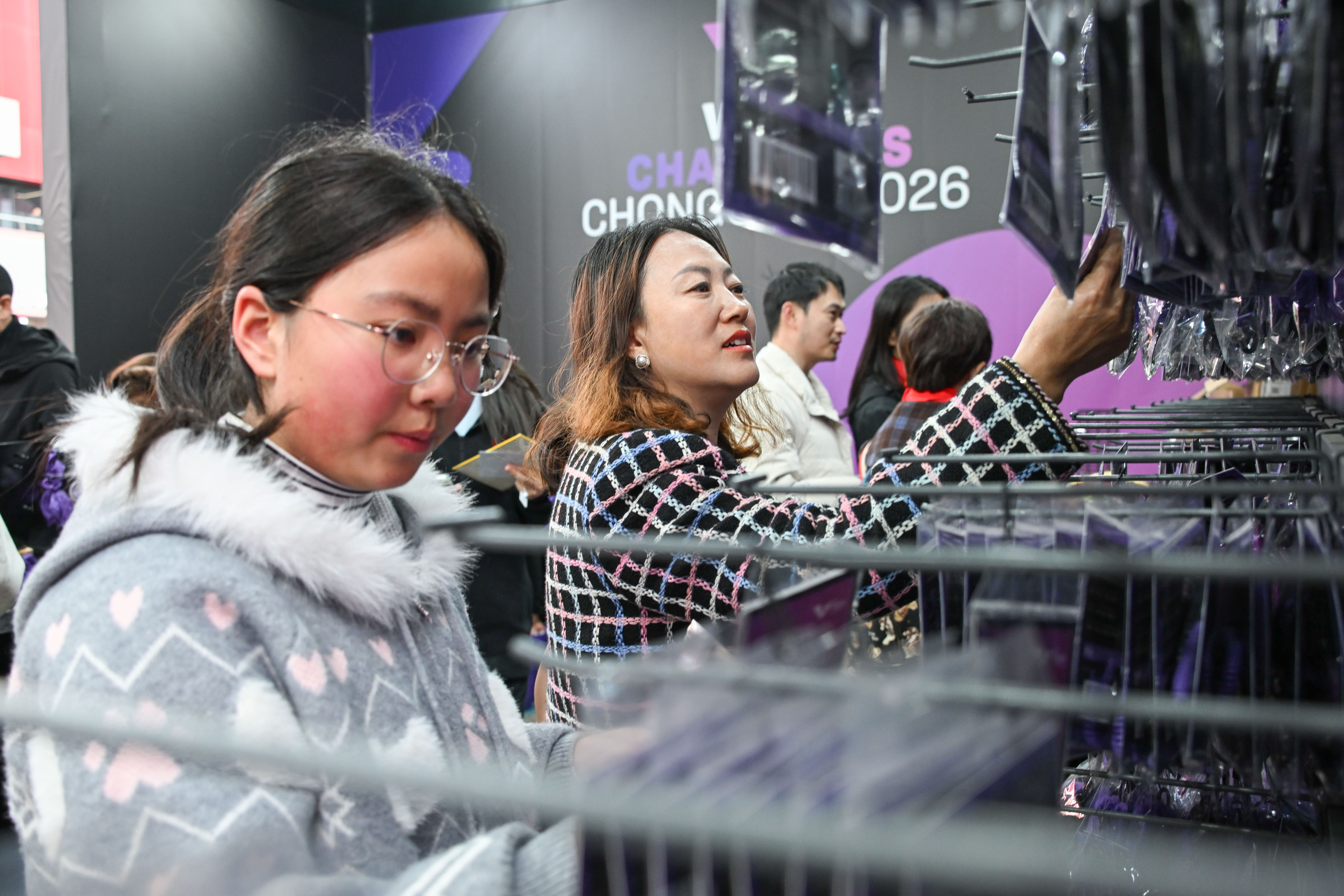 3月14日,重庆巴南华熙生物·润百颜ECM中心,球迷选购赛事商品。记者 谢智强 摄