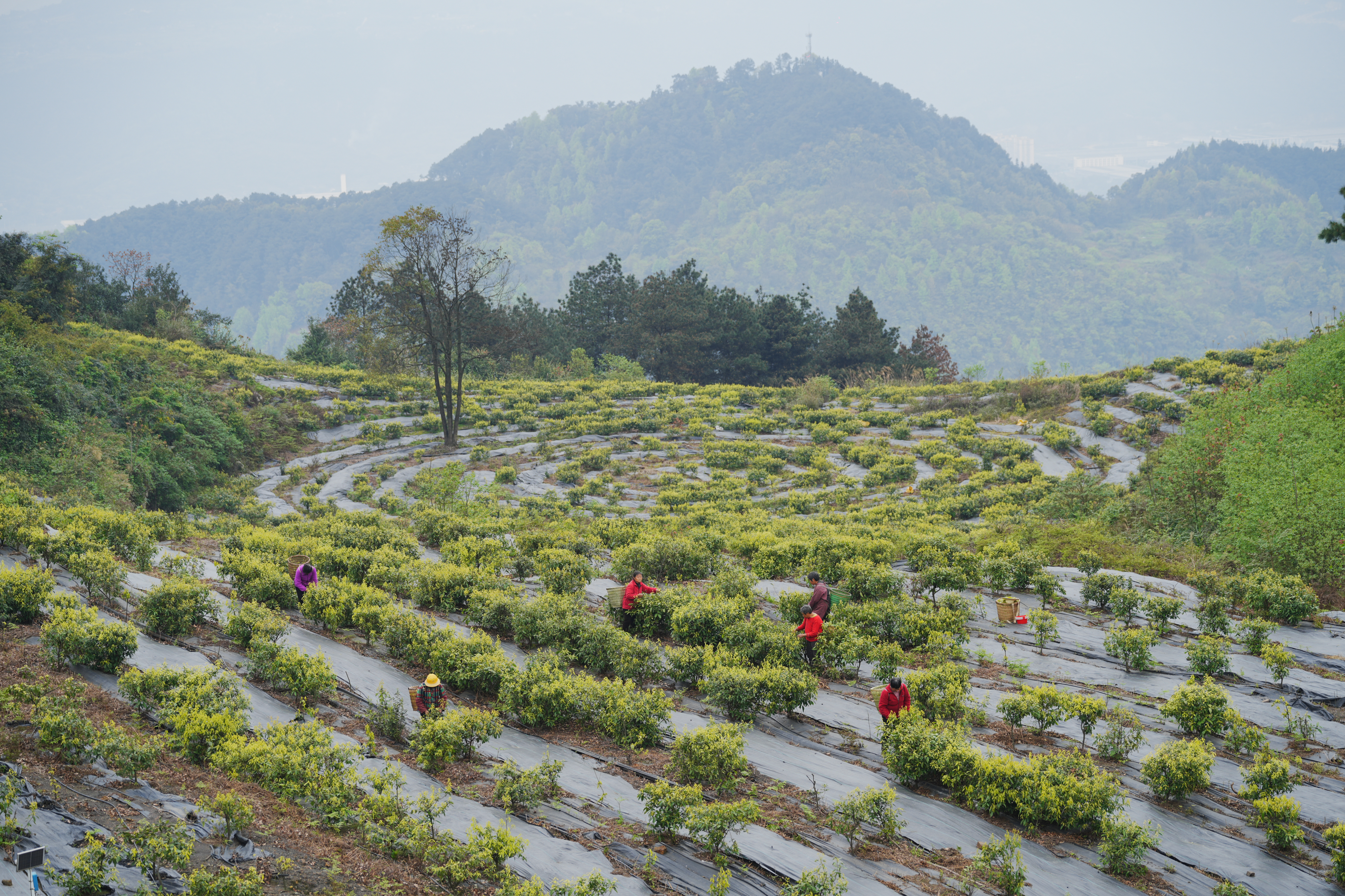 3月22日,北碚区天府镇文星村缙云甜茶标准化种植基地,村民在采摘缙云甜茶。特约摄影 秦廷富
