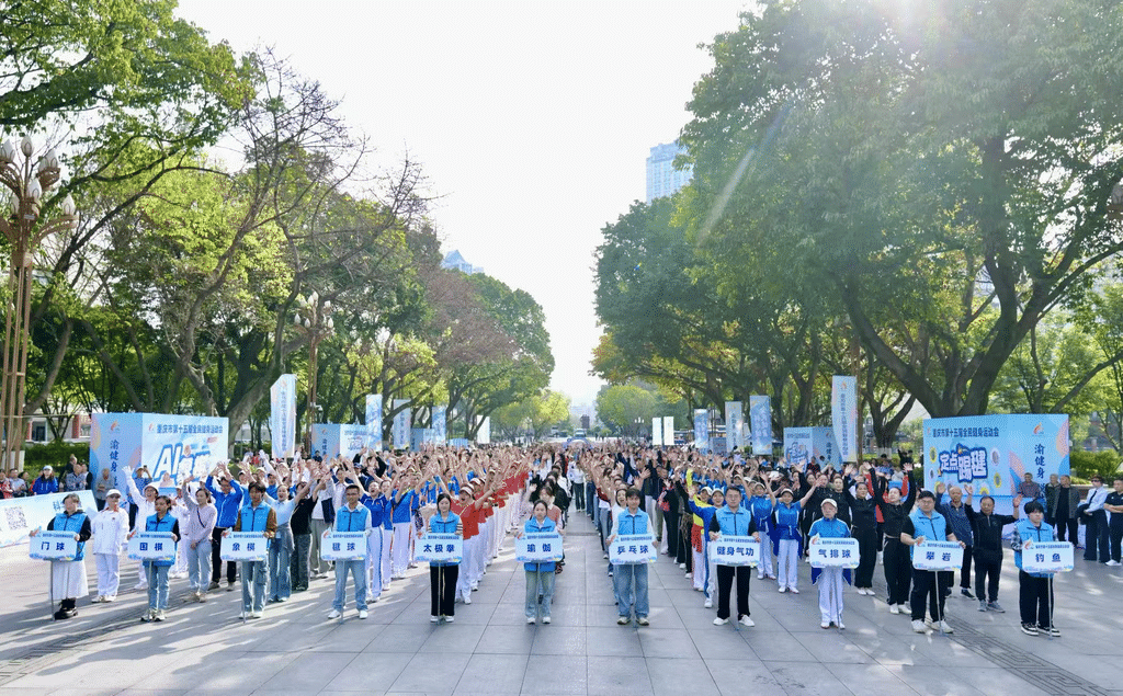 4月23日上午,重庆市第十五届全民健身运动会开幕式在大田湾全民健身中心外广场举行,近500名健身爱好者齐聚现场,以昂扬向上的精神风貌,共同见证盛会启幕。本届全民健身运动会系列赛事将持续至11月,共设置21个大项,走进18个区县。