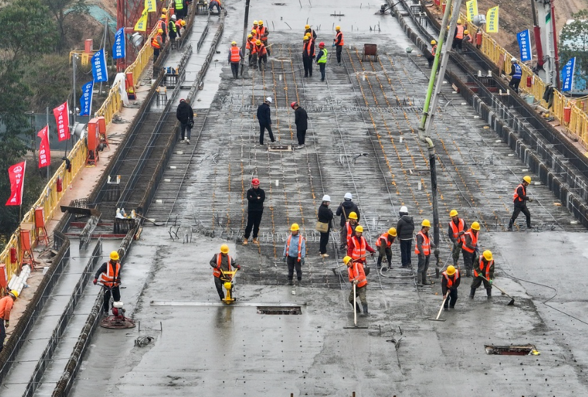 2月11日,在成渝中线高铁重庆段3标重庆铜梁制梁场内,机械轰鸣、焊花飞溅,685孔箱梁预制任务快速推进。