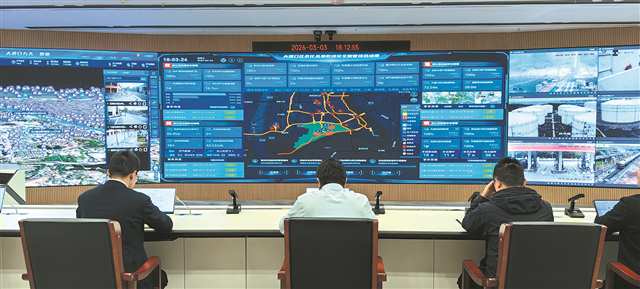 在大渡口数字化城市运行和治理中心,工作人员正在查看油气存储情况