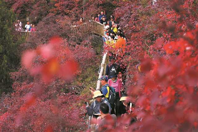 生态赋能,打造全域文旅精品。坚持生态修复与景观打造同步发力,栽植红叶品种200余个、面积达120万亩,打造全国唯一峡谷红叶景区,推出红叶观光、红叶文创、红叶民宿等系列产品,连续举办19届国际红叶节,跻身“全国十大地方节庆品牌”。2025年红叶季,单日接待游客多次突破10万人次,入境游人次、入境游消费分别增加208%、352%。