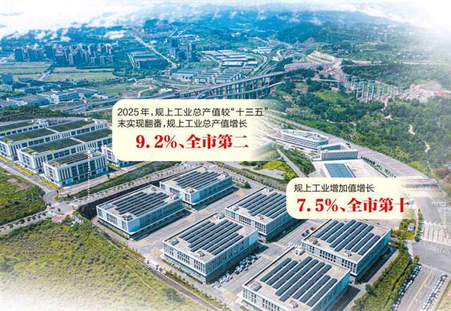数据是最有力的注脚:2025年,规上工业总产值较“十三五”末实现翻番,规上工业总产值增长9.2%、全市第2;规上工业增加值增长7.5%、全市第10;工业税收较“十三五”末实现翻番;工业投资增长11.1%,占全区固定资产投资比重达31.4%,较“十三五”末提高16个百分点;规上软信服务业营业收入增长20.2%……澎湃动力持续释放。