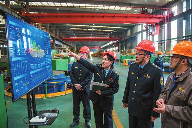 金龙铜管生产车间,市场监管局到车间送服务 摄/侯本艳