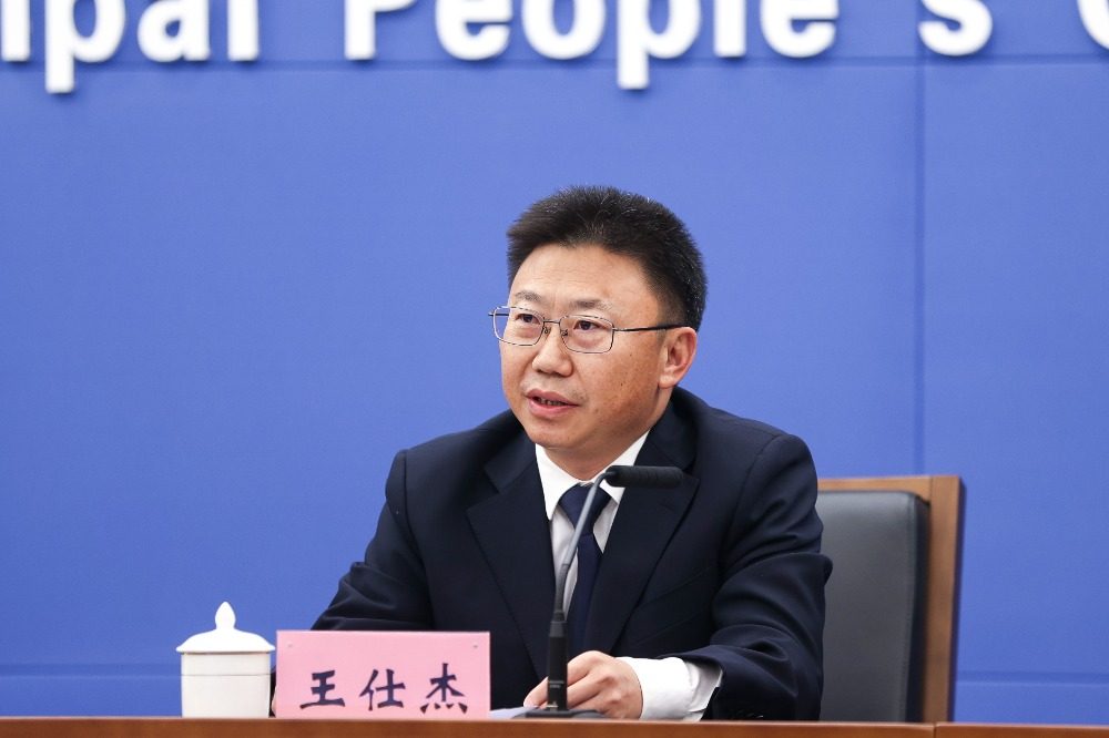 市委农业农村工委委员、市农业农村委副主任、市乡村振兴局副局长(兼)王仕杰回答记者提问。记者 尹诗语 摄