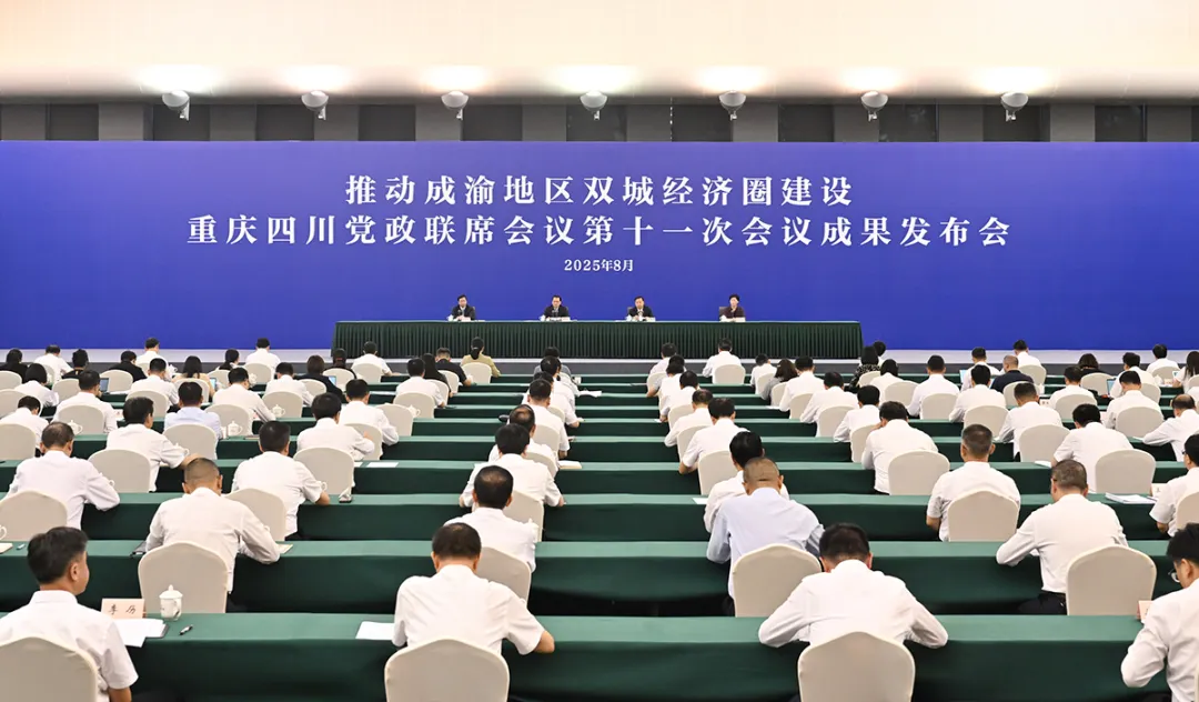 8月26日,四川省党政代表团来渝考察,两省市召开推动成渝地区双城经济圈建设重庆四川党政联席会议第十一次会议。重庆市委书记袁家军主持会议并通报主要成果和重庆市下步工作打算,四川省委书记王晓晖出席并通报四川省下步工作打算,四川省委副书记、省长施小琳,重庆市委副书记、市长胡衡华分别通报两省市2025年上半年推动成渝地区双城经济圈建设情况。中央财办有关负责同志到会指导。
