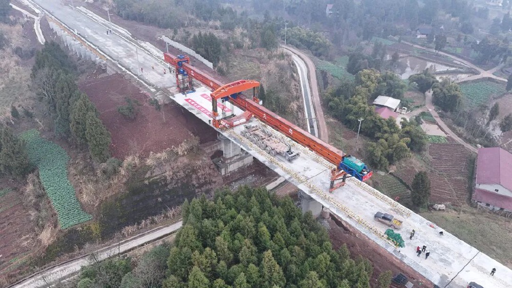 随着此次架梁施工任务的完成,成渝中线高铁四川段桥梁建设全部完成,正线隧道27座已贯通26座,控制性工程蜀安隧道盾构段即将掘进完成,进入无砟轨道、“四电”工程及站房建设冲刺阶段。